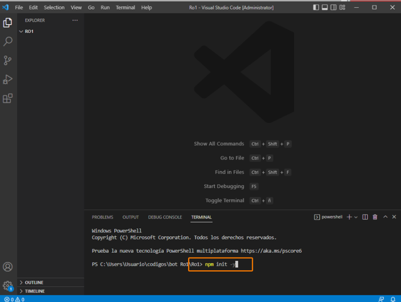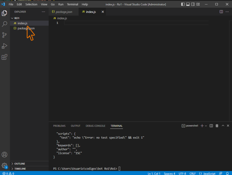 A partir de ahí ya podemos comenzar a programar sobre index.js y correr el programa con el comando
