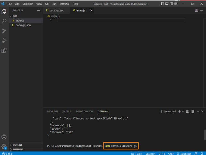 Pero esto aun no funcionaría para discord y ya que queremos un bot para discord, es momento de instalar las dependencias de discord, para ello usaremos el comando