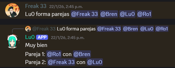 Los integrantes mencionados serán emparejados al azar y mencionados en un mensaje