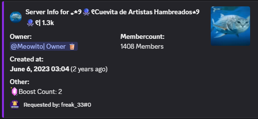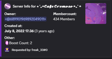 reseñas de Freak 33 de los servidores de discord que ha visitado.